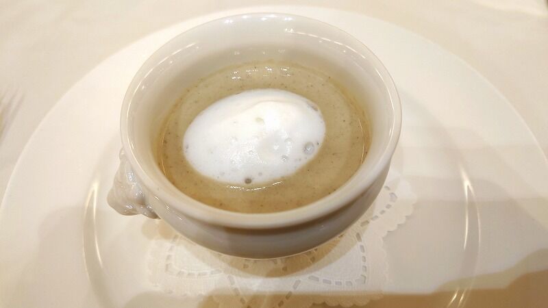 枝豆のポタージュスープだったかな、ずんだーっって感じ。